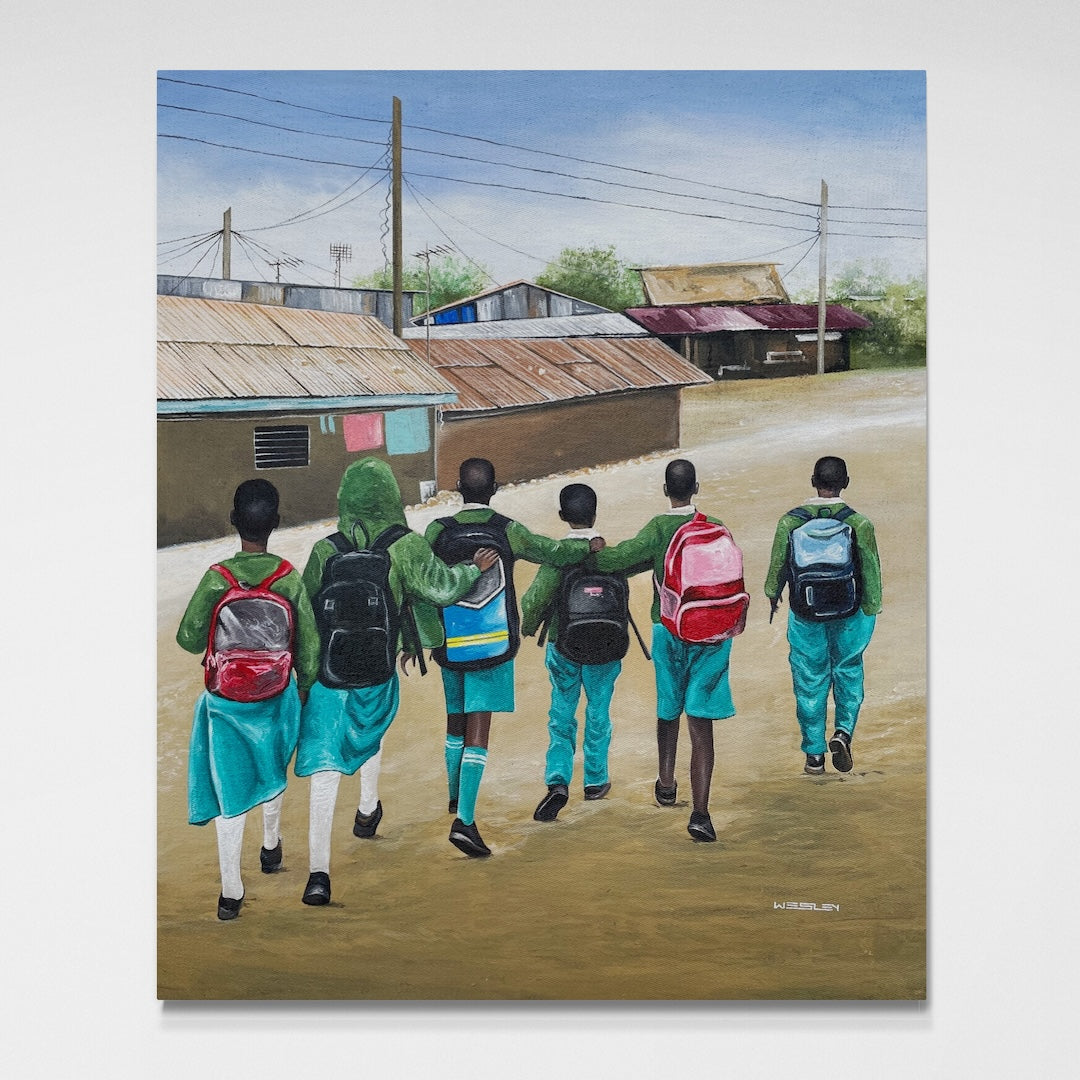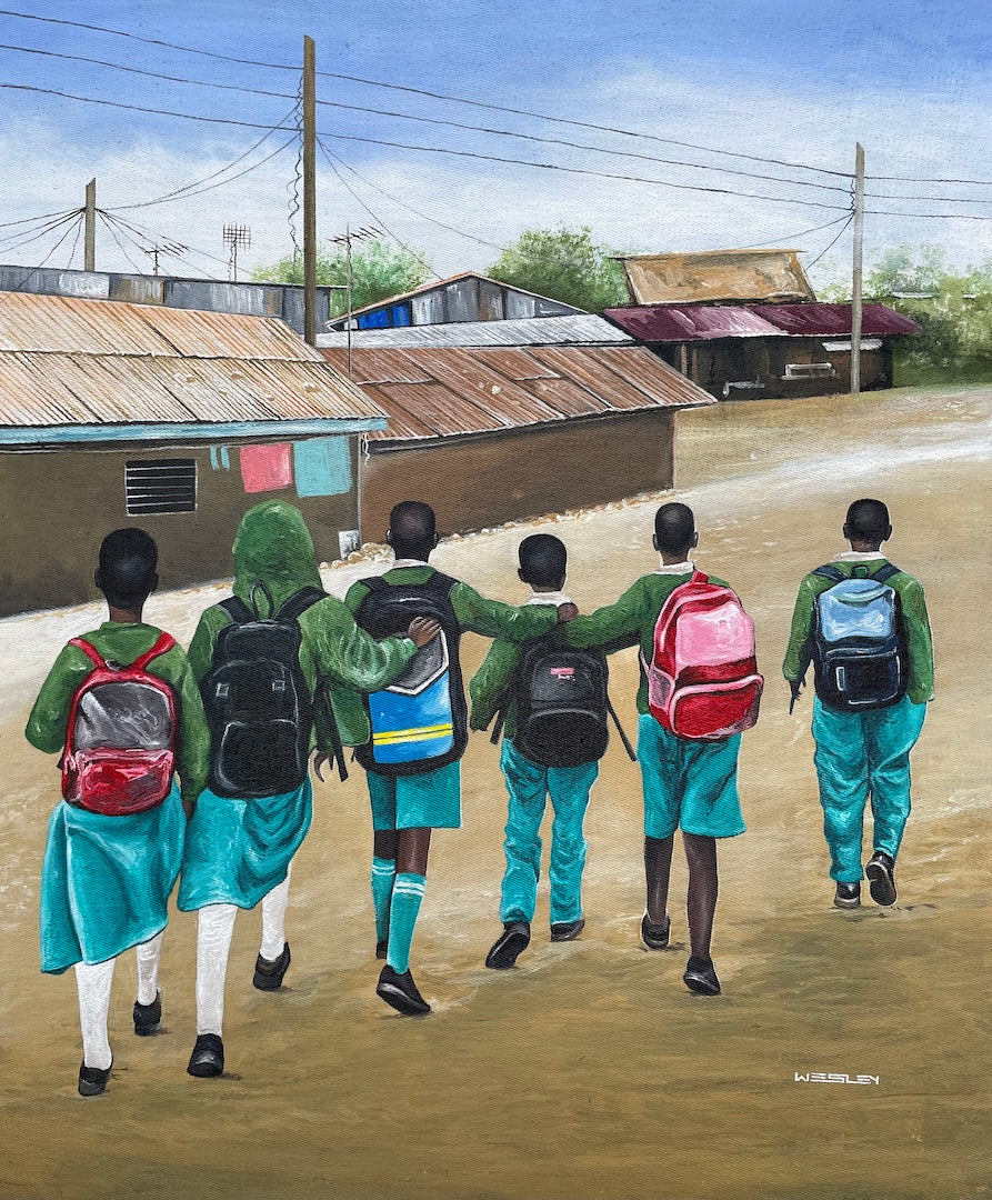 This piece was created at the Uweza Art Gallery by a youth artist living in the Kibera slum of Nairobi Kenya. 60% of the proceeds of this sale will go to the artist and 40% will go toward the operations of our art gallery, which provides opportunities for creative expression and development of artistic talent for children and youth living in Kibera.