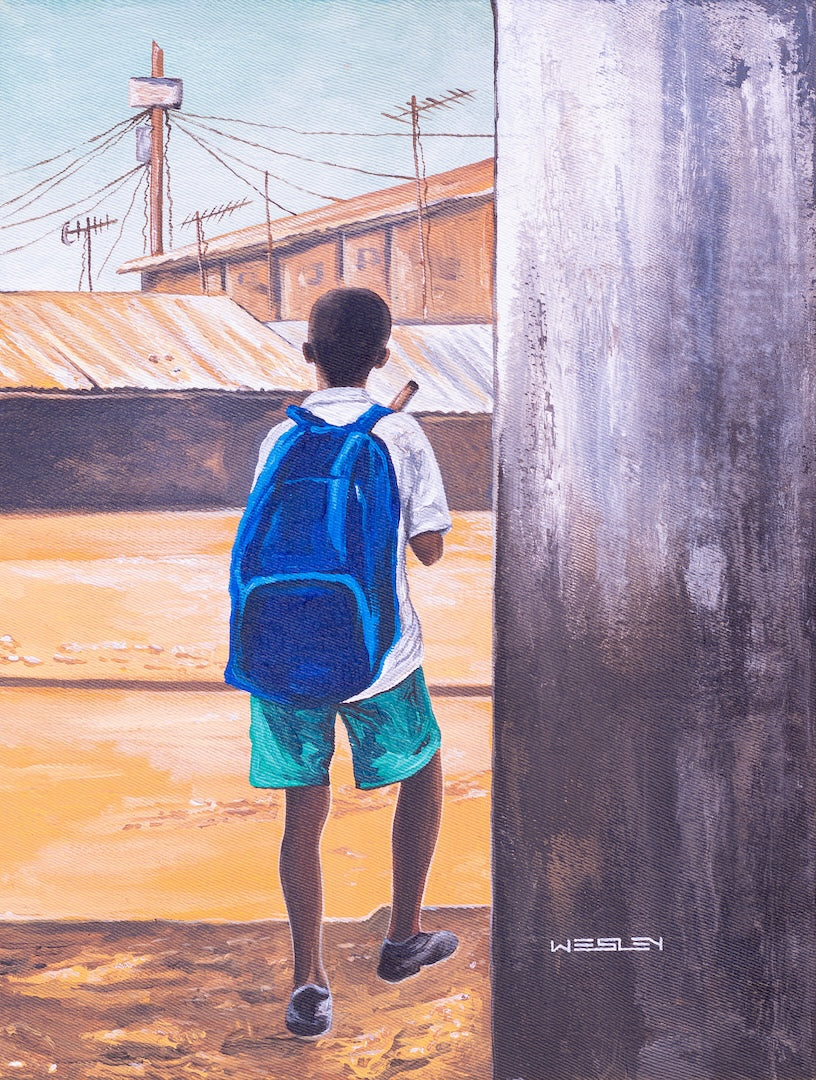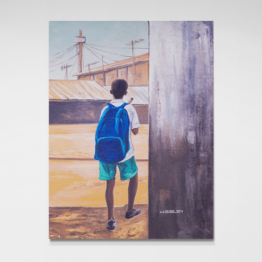 This piece was created at the Uweza Art Gallery by a youth artist living in the Kibera slum of Nairobi Kenya. 60% of the proceeds of this sale will go to the artist and 40% will go toward the operations of our art gallery, which provides opportunities for creative expression and development of artistic talent for children and youth living in Kibera.