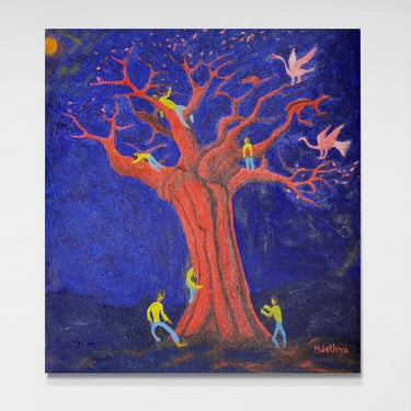 This piece was created at the Uweza Art Gallery by a youth artist living in the Kibera slum of Nairobi Kenya. 60% of the proceeds of this sale will go to the artist and 40% will go toward the operations of our art gallery, which provides opportunities for creative expression and development of artistic talent for children and youth living in Kibera.