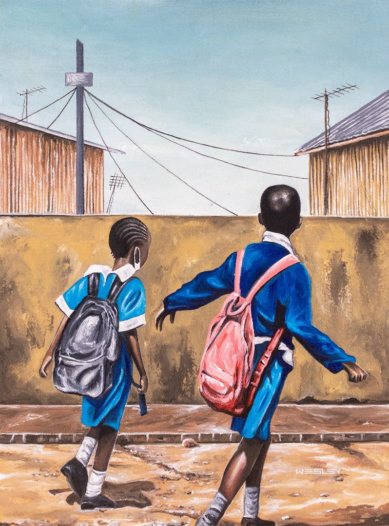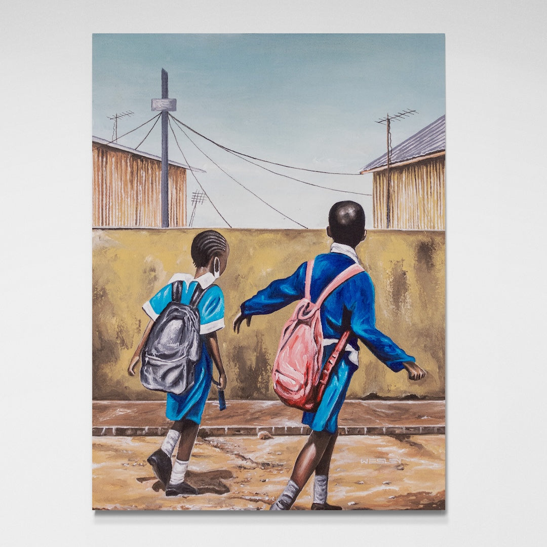 This piece was created at the Uweza Art Gallery by a youth artist living in the Kibera slum of Nairobi Kenya. 60% of the proceeds of this sale will go to the artist and 40% will go toward the operations of our art gallery, which provides opportunities for creative expression and development of artistic talent for children and youth living in Kibera.