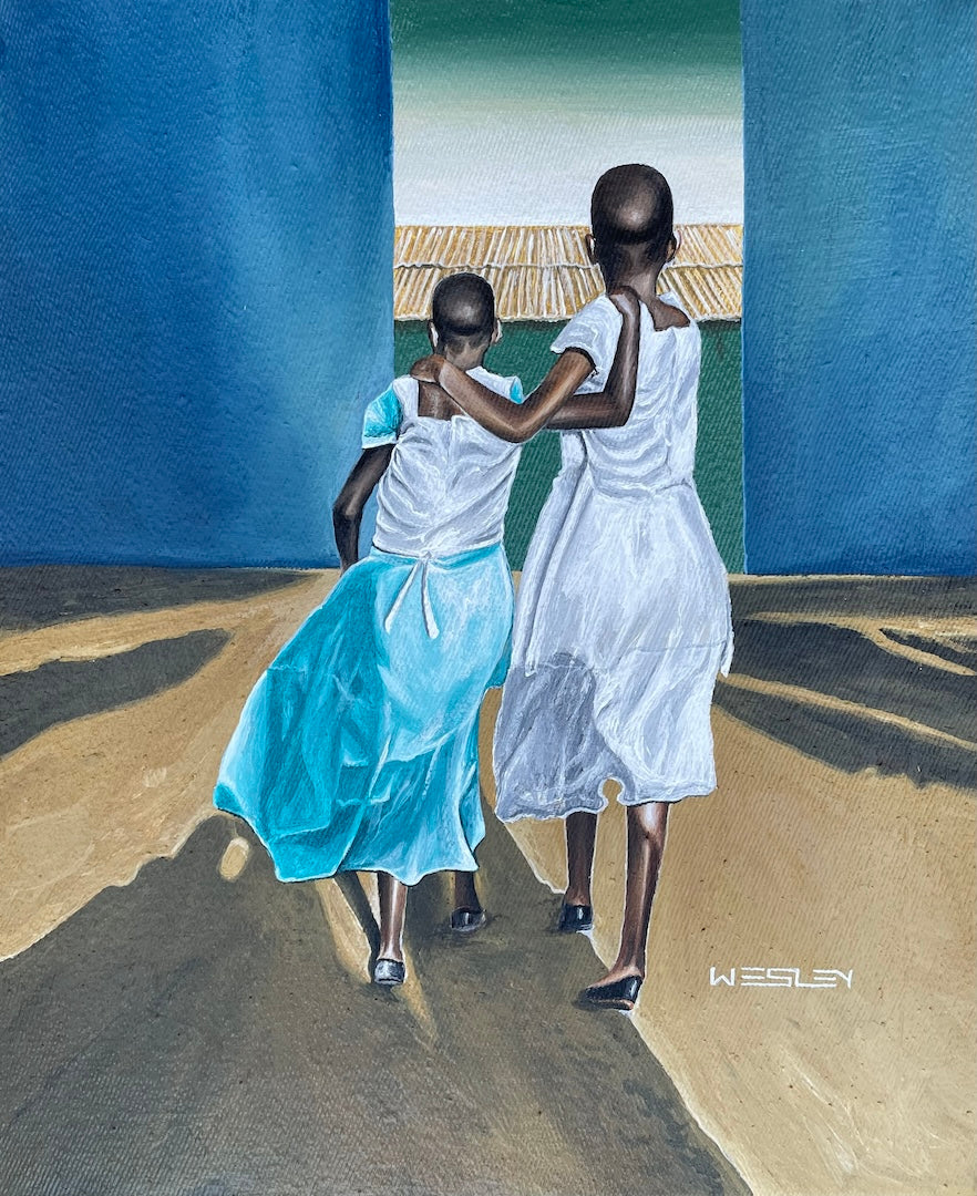 This piece was created at the Uweza Art Gallery by a youth artist living in the Kibera slum of Nairobi Kenya. 60% of the proceeds of this sale will go to the artist and 40% will go toward the operations of our art gallery, which provides opportunities for creative expression and development of artistic talent for children and youth living in Kibera.