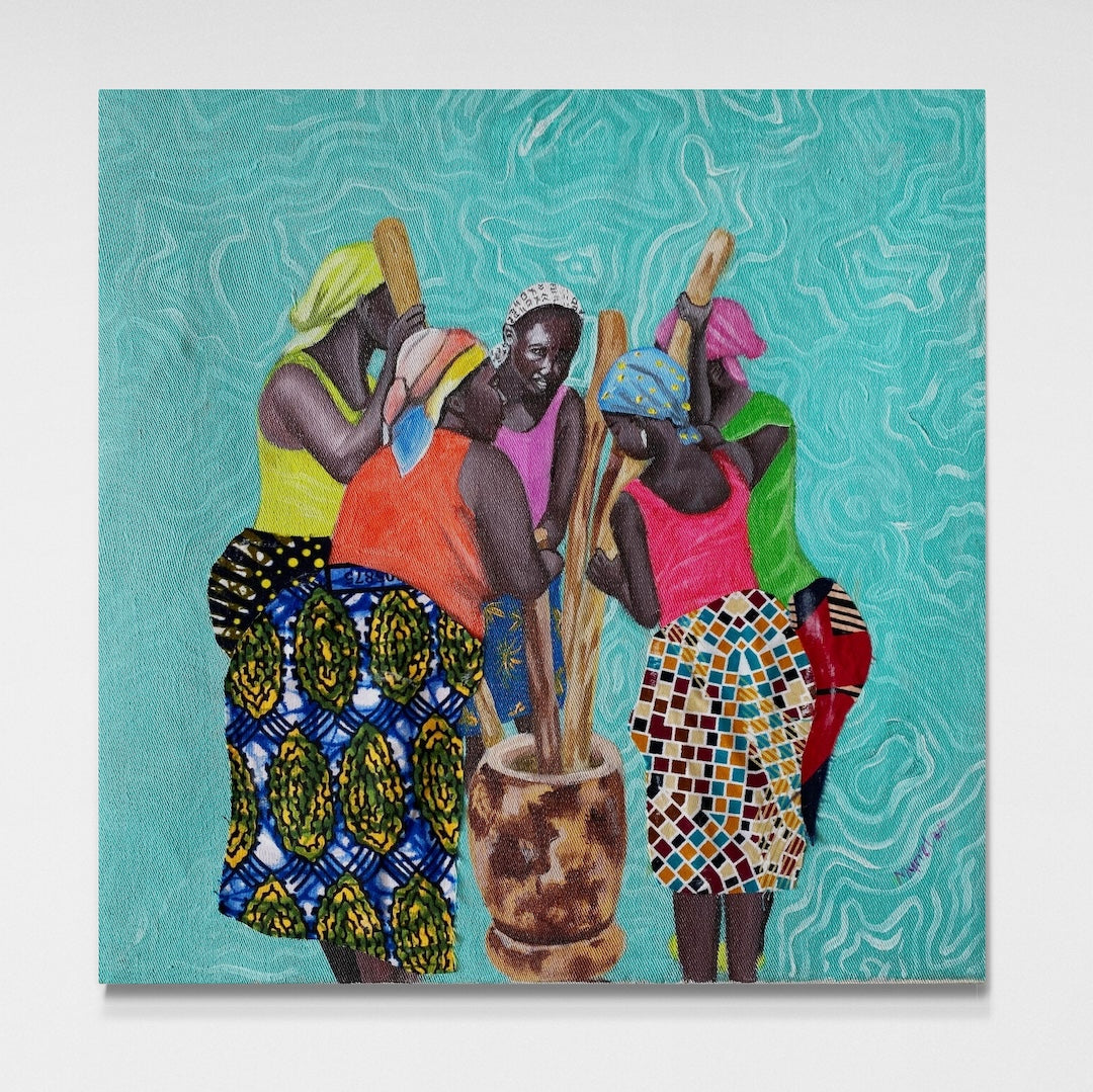 This piece was created at the Uweza Art Gallery by a youth artist living in the Kibera slum of Nairobi Kenya. 60% of the proceeds of this sale will go to the artist and 40% will go toward the operations of our art gallery, which provides opportunities for creative expression and development of artistic talent for children and youth living in Kibera.